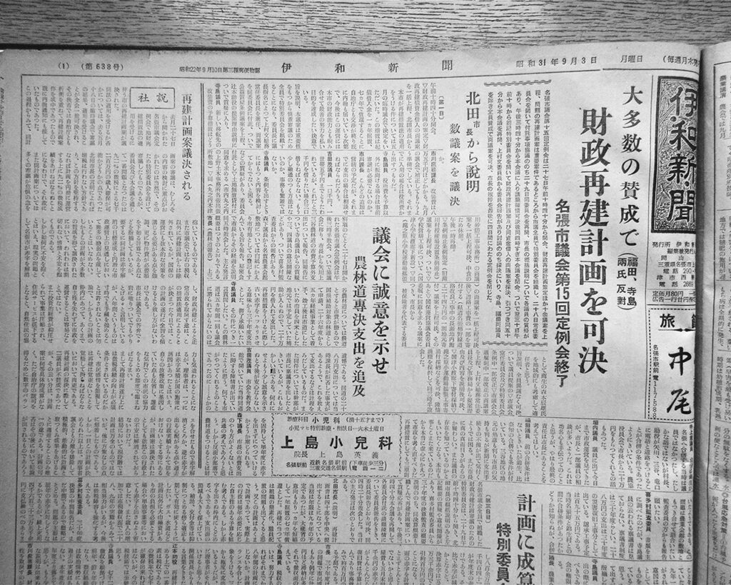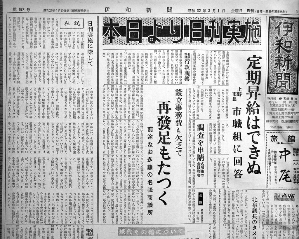 名張市は令和6年3月に市制施行70周年を迎えた。この記念すべき年にあたり弊社は「伊和新聞でたどる名張市70年史」という連載を企画。令和5年6月3日付紙面より連載がスタートし、令和7年3月29日まで通算86回の連載になった。この連載をウエブ版に再構成し、アーカイブ資料として公開。